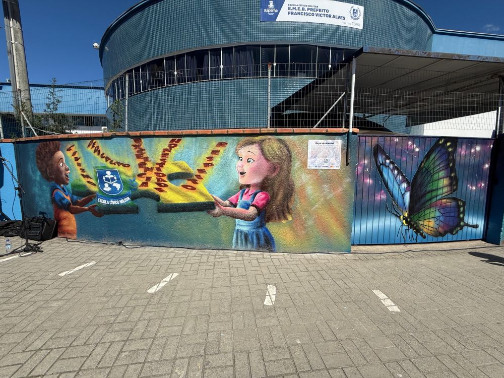 Os alunos da Escola Cívico-Militar Prefeito Francisco Victor Alves viveram na tarde desta terça-feira (23) um momento especial: a inauguração do mural “Peças do Amanhã”, obra que integra o projeto Escola Sem Muros.