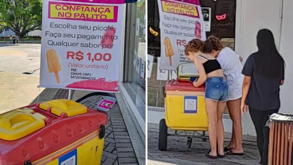 Uma sorveteria de Brusque, no Vale do Itajaí, apostou na honestidade dos clientes e colocou um carrinho de venda de picolés sem atendente no Centro da cidade. A iniciativa é chamada de 'Confiança no Palito'.