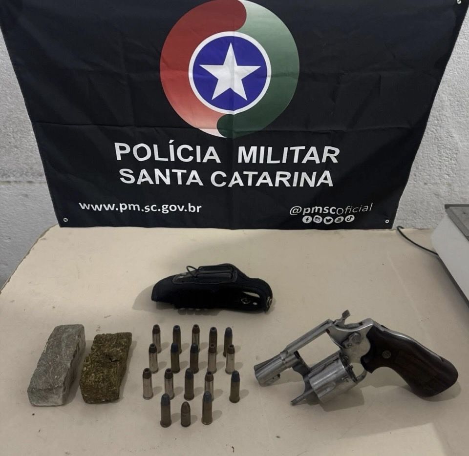 Na tarde de sábado, 07/02, a Polícia Militar prendeu um homem no bairro Zimbros após atender uma ocorrência envolvendo porte ilegal de arma de fogo, disparos, posse de drogas e lesão corporal leve dolosa.