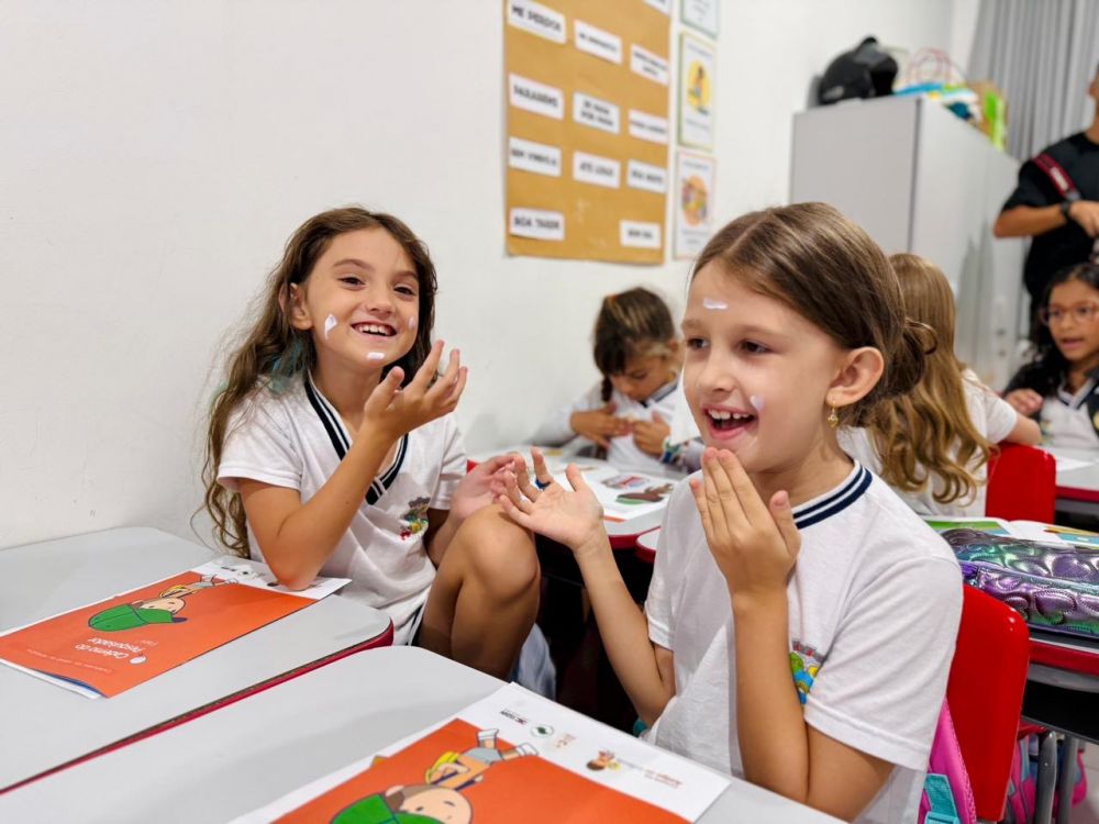 Por meio de histórias e atividades práticas, as crianças receberam orientações sobre o uso correto do protetor solar, além de medidas complementares como boné, óculos escuros e roupas com proteção UV. Ao final, cada aluno ganhou um livrinho educativo e um adesivo com o título “Amigo do Sol”, incentivando que o aprendizado também seja levado para casa.