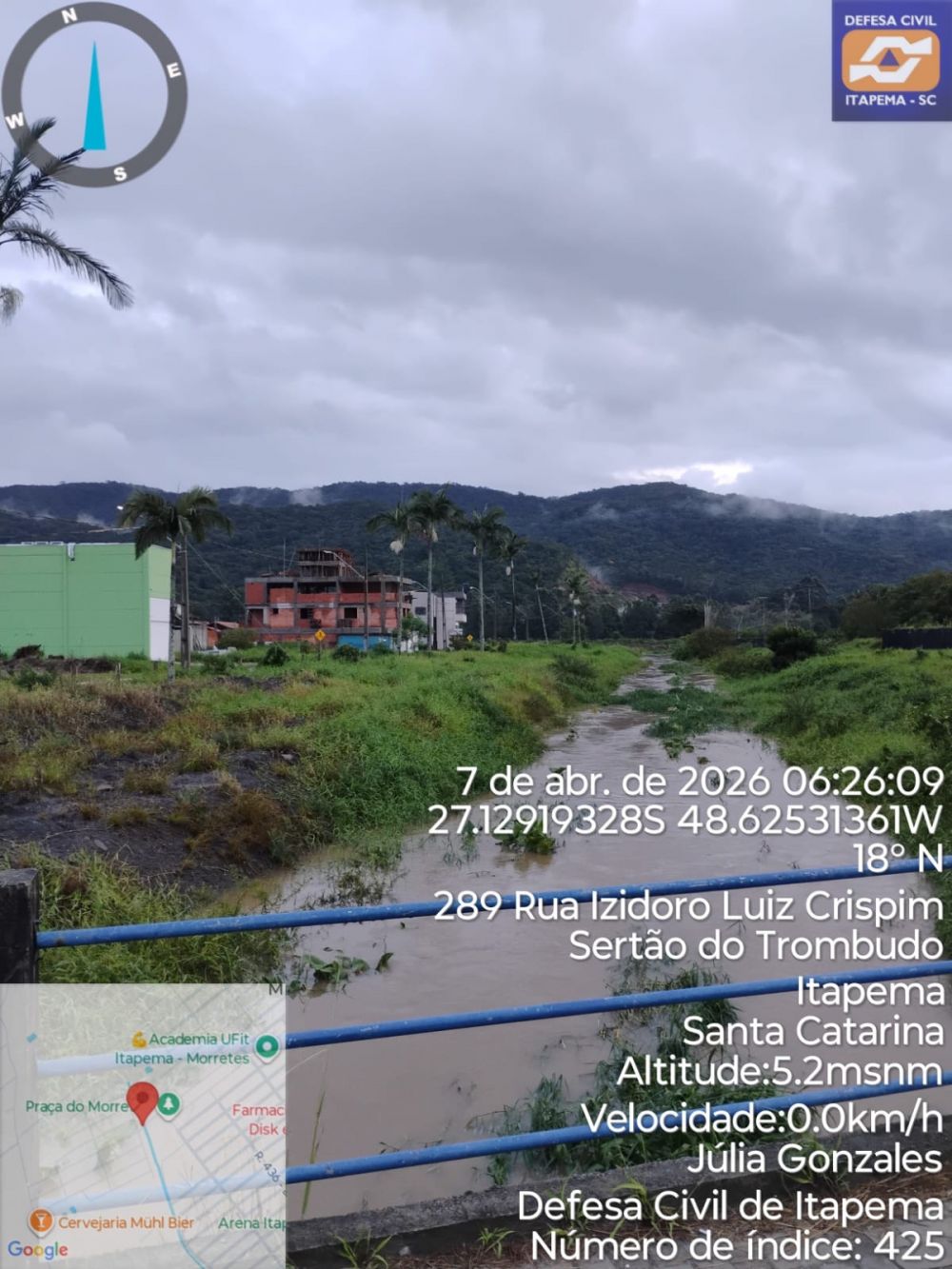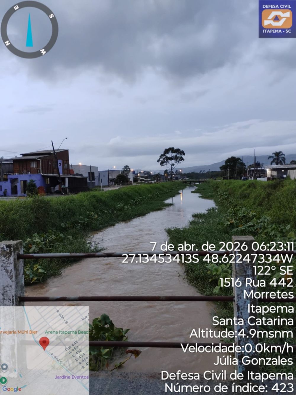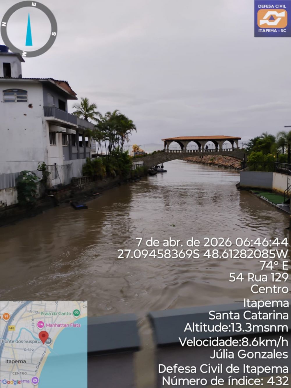 Mesmo sendo o segundo município da região com maior volume de chuva nas últimas 24 horas, Itapema não registrou grandes intercorrências. De acordo com dados da Defesa Civil Estadual, o município acumulou 116,7 mm de chuva no período, ficando atrás apenas de Balneário Camboriú, que registrou 167,9 mm.
